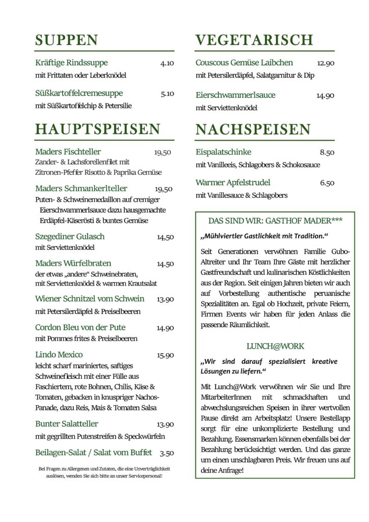 Liebe Gäste, ab heute (26.04. – 18.05.) starten wir mit unseren SPARGEL WOCHEN! Unser Spargel kommt frisch von unseren Gemüselieferanten Schoberleitner aus Eferding! Das Mader Team hat sich wieder viele