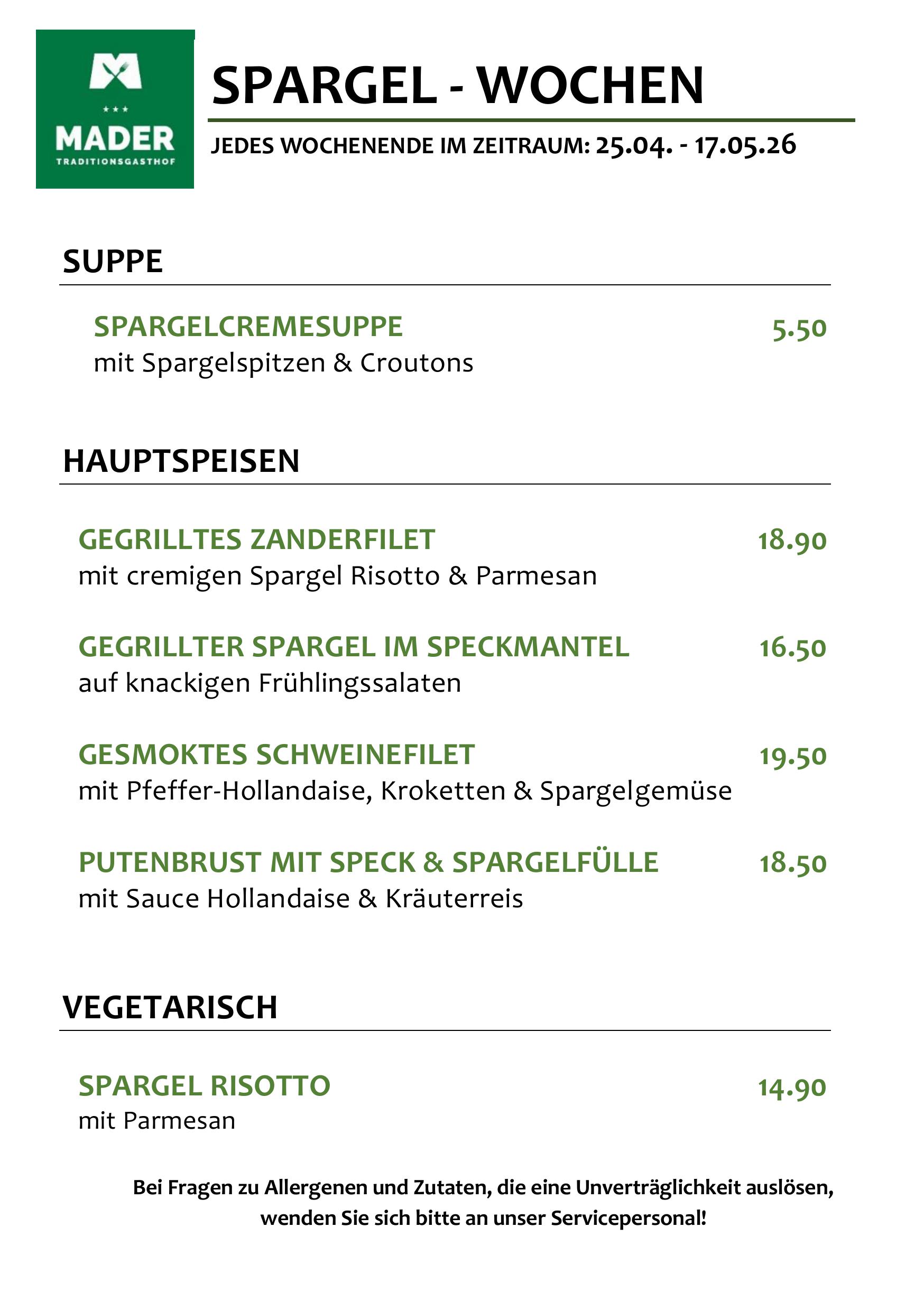 Restaurant | Speisekarte | Genuss | BUSREISEN | SPEZIALITÄTENWOCHEN